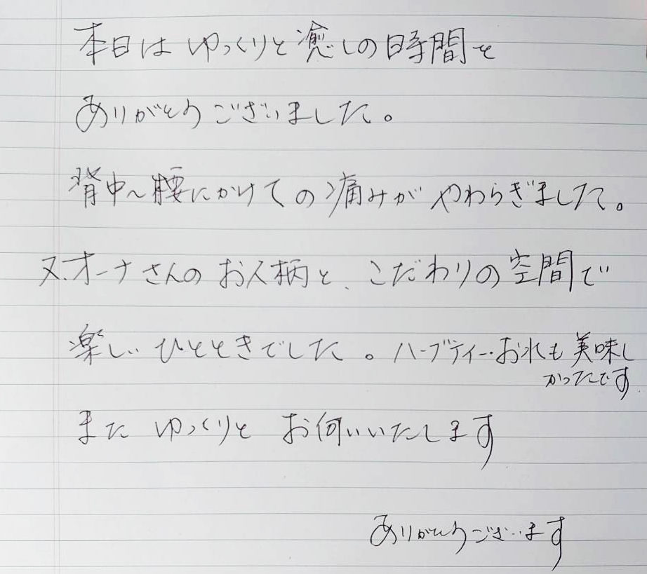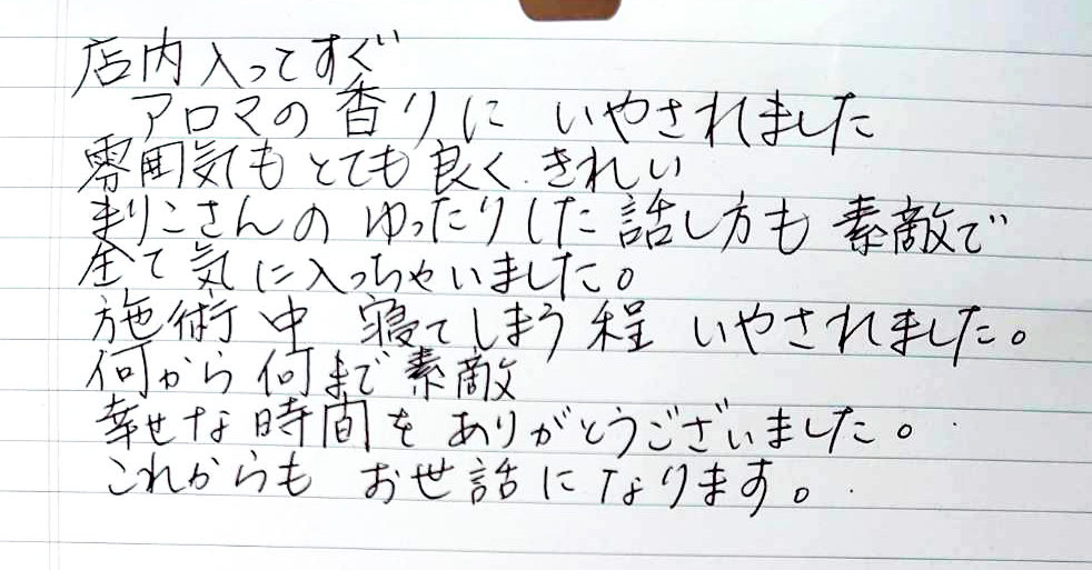 施術中寝てしまう程 いやされました。