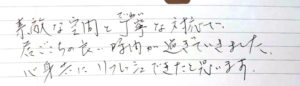 お話もたくさん聞いていただき、心も身体もリフレッシュできた