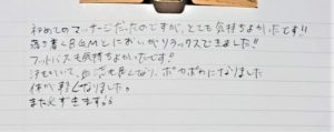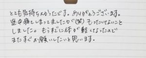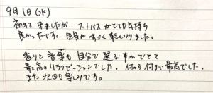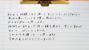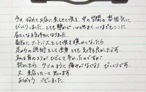 本日は本当に素晴らしい時間と施術を有難うございました。