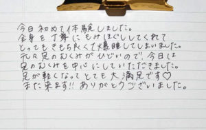 初めてのマッサージだったのですが、とても気持ちよかったです!!